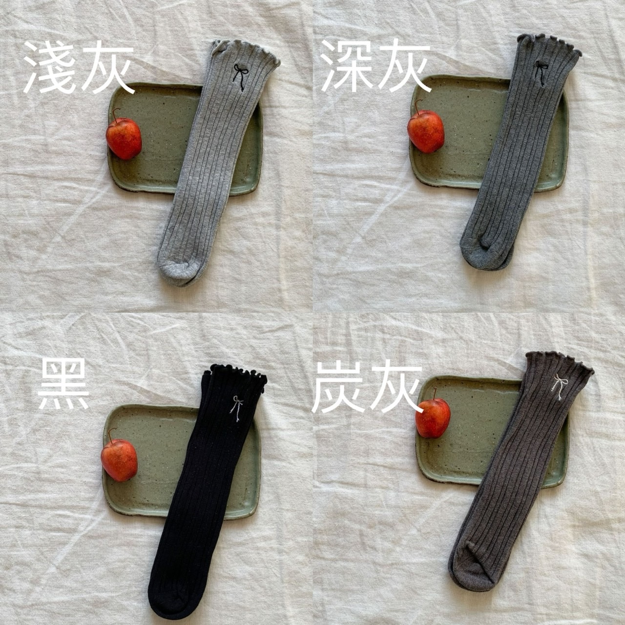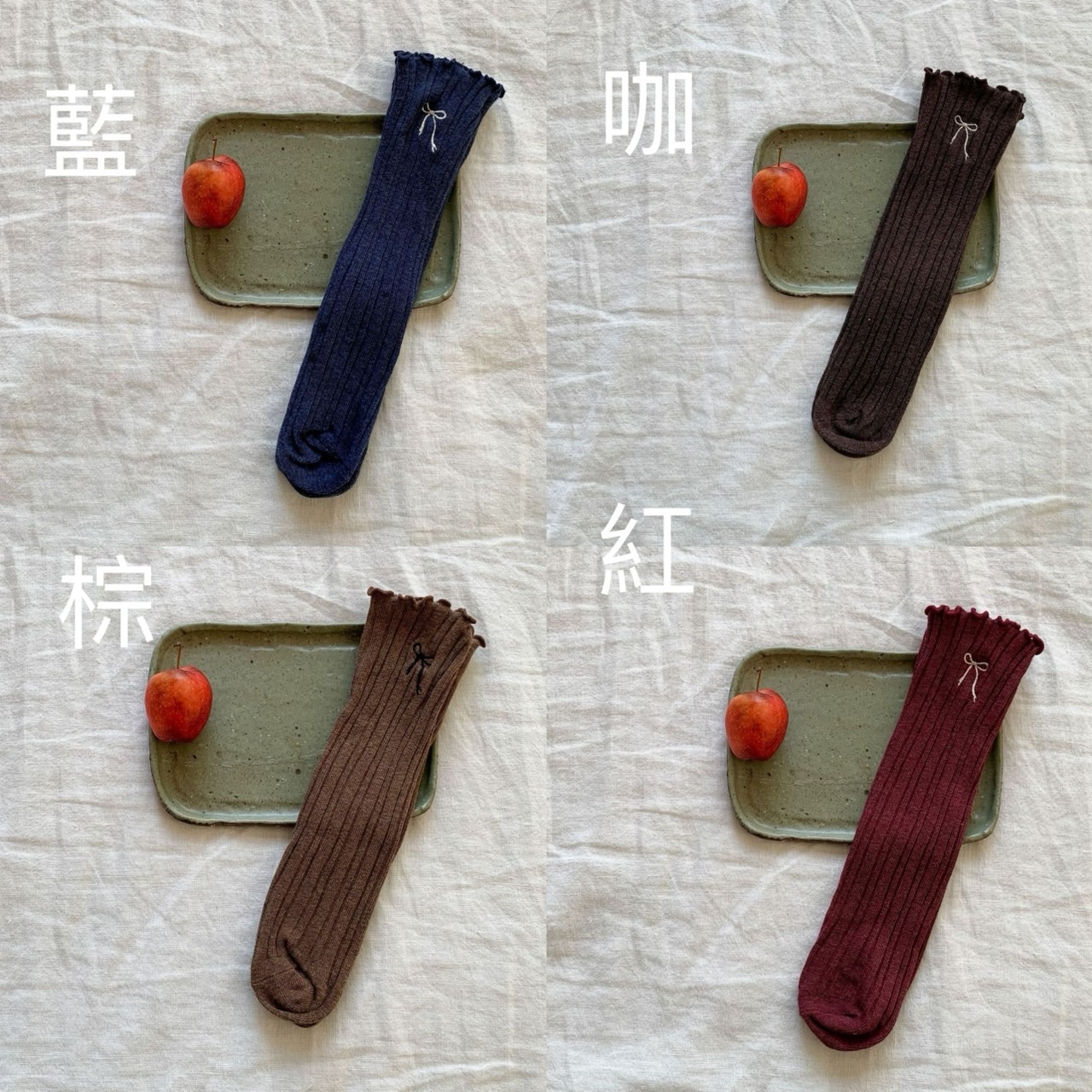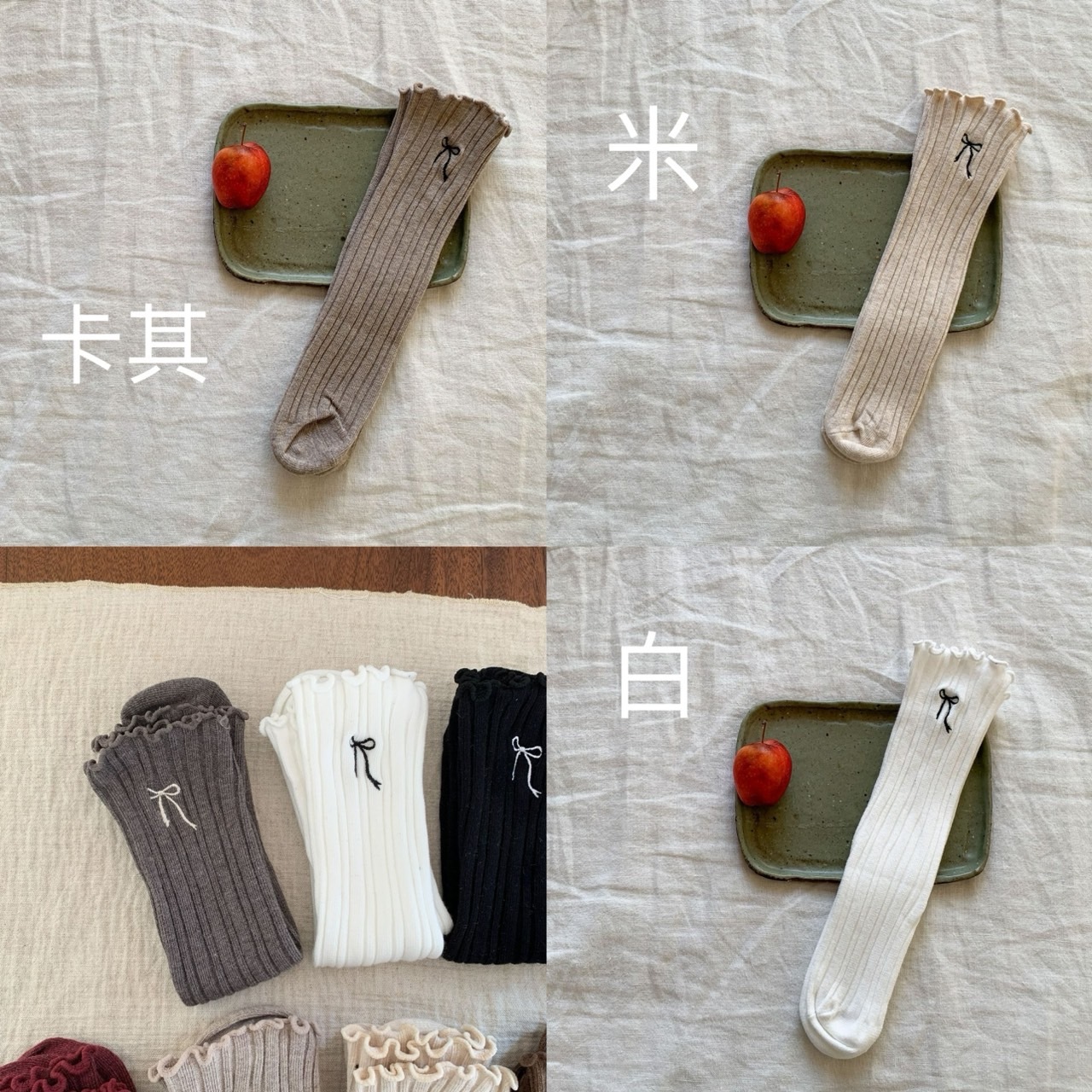 【E199】多色蝴蝶結無跟均碼直筒襪